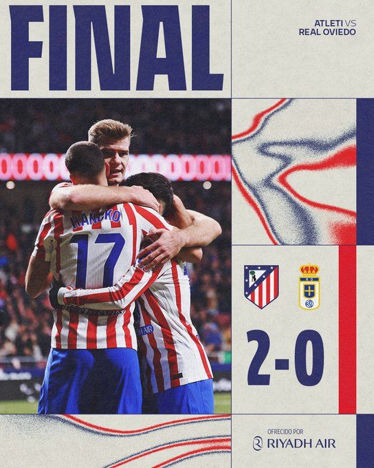 2025年11月30日 联赛6连胜!马竞2-0皇家奥维耶多下场将战巴萨 瑟尔洛特梅开二度